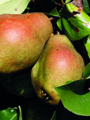 Gyümölcs: Gyümölcse nagy, széles körte alakú, jellegzetesen középen a legszélesebb. Színe élénk szalmasárga, sokszor élénk pirossal mosott, héja érdes, középnagy barna pontozást visel. Húsa sárgásfehér, kemény, túléretten hirtelen puhuló.
